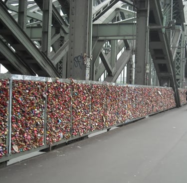 A Ponte Hohenzollern é uma das pontes mais conhecidas da Alemanha. Ela conecta o centro da cidade de Colônia com o distrito de Deutz, na margem direita do Reno. A ponte é especialmente famosa por seus cadeados do amor – milhares de casais prendem cadeados aqui como símbolo de seu amor.